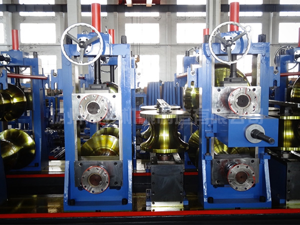 流程:上料→開(kāi)卷→直頭→夾送矯平→剪切對(duì)焊→活套→成型、高頻擠壓焊接、去除外毛刺、焊縫磨光、定徑、粗矯直→飛鋸定尺→輥道→檢驗(yàn)收集→打包→稱重→標(biāo)記→入庫(kù)